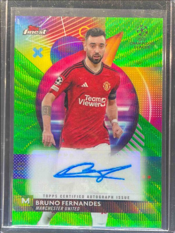 Bruno Fernandes 2023 Topps Finest UEFA Club Competitions #A-BF Autographs Neon - Green Wave /99 RAW Price Guide