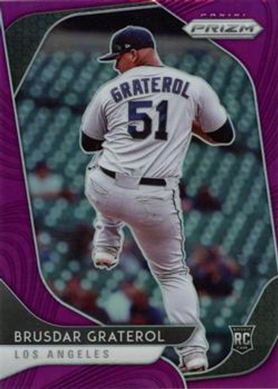 The Brusdar Graterol 2020 Prizm #56 Purple Rookie card is 1 of 36 Brusdar Graterol's card variations in the 2020 Prizm set being tracked by Sports Card Investor, including Base, Blue, Carolina Blue, Cosmic Haze, and Green.