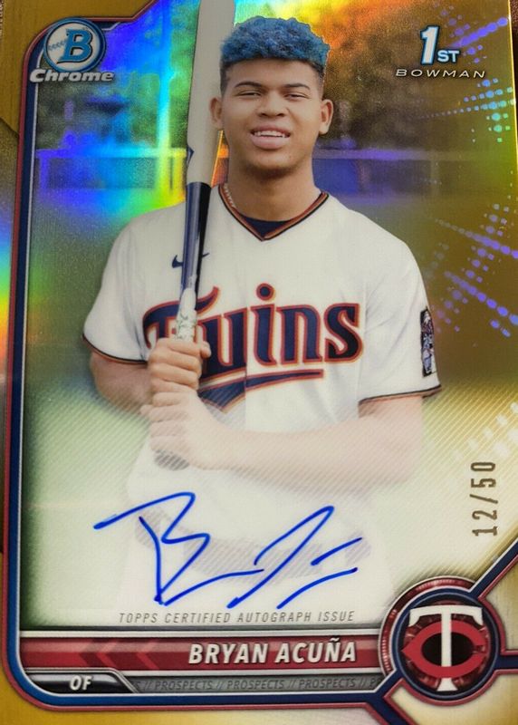2022 Bowman Chrome Bryan Acuna 1st prospect Gold Auto Autograph #11/50 Twins