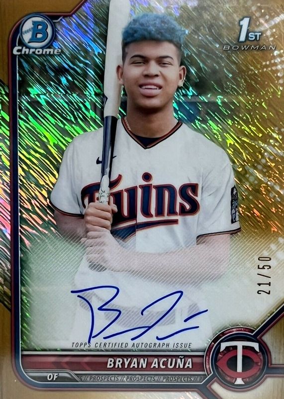 2022 Bowman Chrome Bryan Acuna Prospect Gold Shimmer Auto /50 SSP Twins