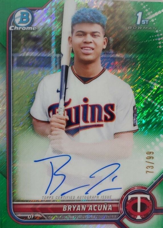 2022 Bowman Chrome Bryan Acuna Green Refractor 1st Prospect Auto #/99 Twins