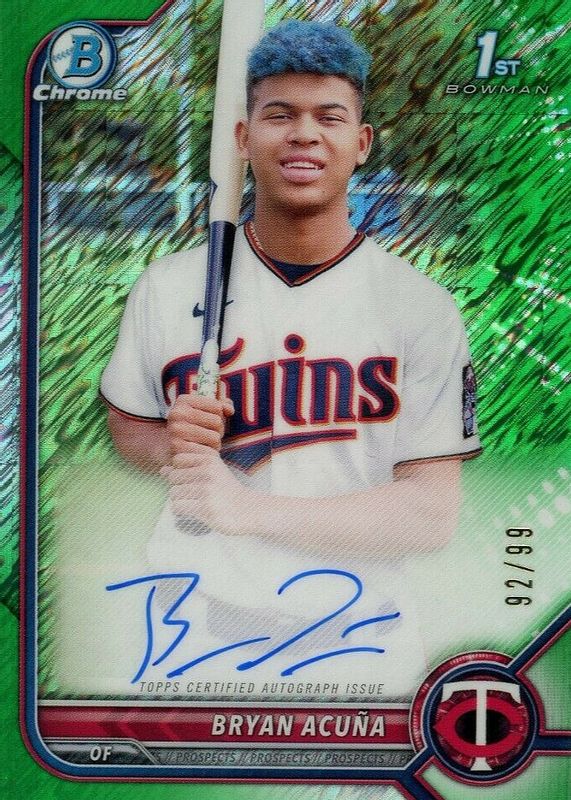 2022 BOWMAN CHROME CPA-BA BRYAN ACUNA 1st GREEN SHIMMER AUTO 97/99 TWINS OF