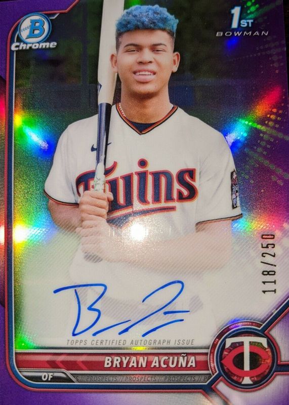 2022 Bowman - Chrome Prospect Bryan Acuna Purple Auto /250 #CPA-BA 9.5 Twins
