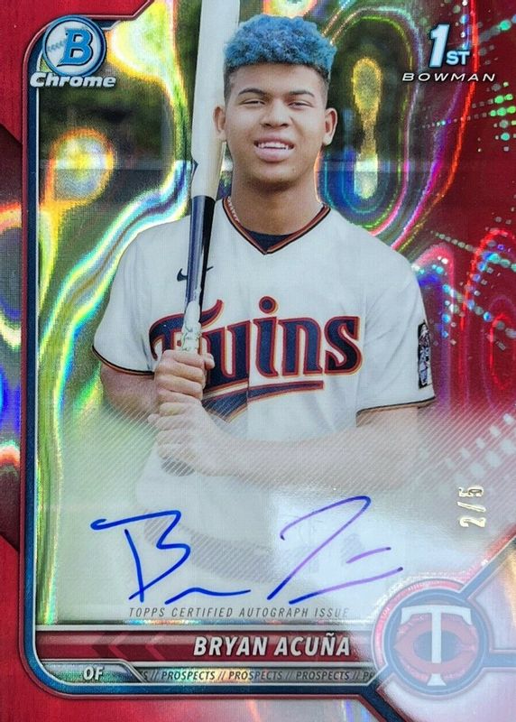 Auctions Ending Soon for Bryan Acuna 2022 Bowman #CPA-BA Chrome Prospect Auto - Red Lava Refractor /5 (1st) RAW