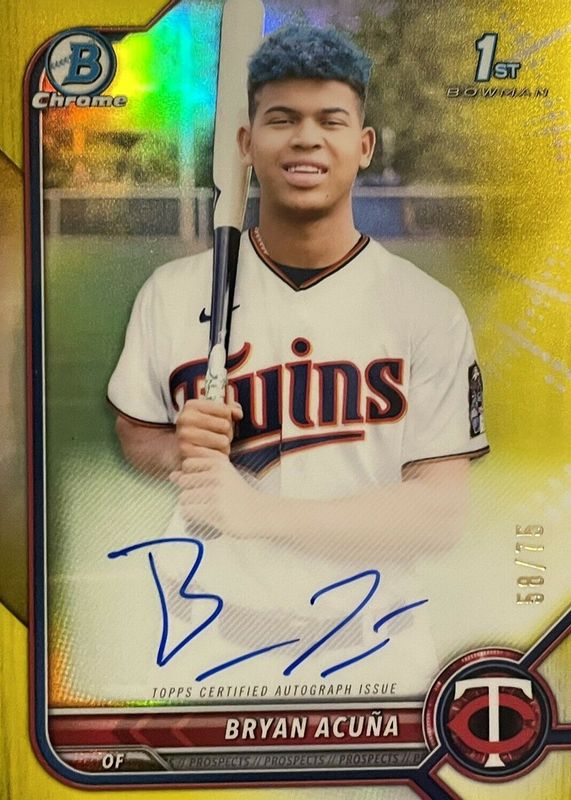 2022 Bryan Acuna Bowman Chrome 1st Yellow Refractor Auto /75 #CPA-BA Twins