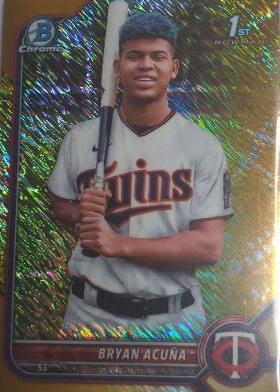 Auctions Ending Soon for Bryan Acuna 2022 Bowman Chrome #BCP-151 Prospects - Gold Shimmer Refractor /50 (1st) RAW