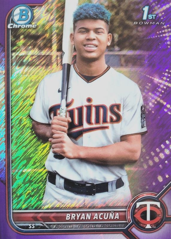 Auctions Ending Soon for Bryan Acuna 2022 Bowman Chrome #BCP-151 Prospects - Purple Shimmer Refractor /250 (1st) RAW