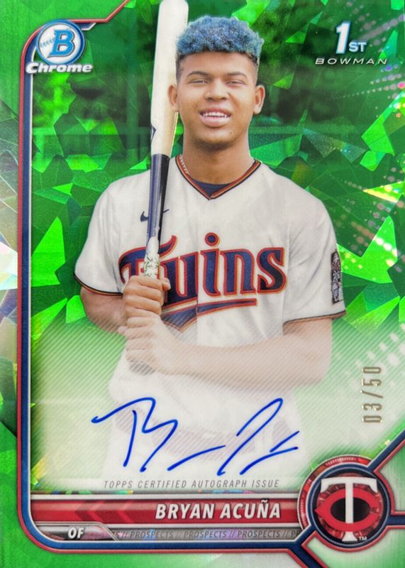 2022 Bowman Chrome Sapphire Bryan Acuna Auto Rookie 1st Green Refractor/50 Twins