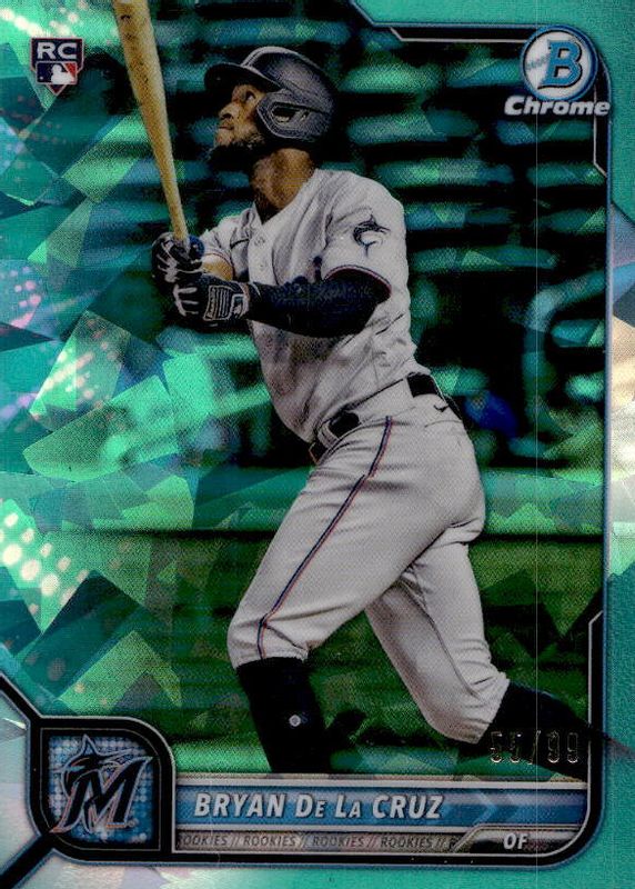2022 Bowman Chrome Sapphire Bryan De La Cruz Aqua Refractor /99 RC #52 Marlins