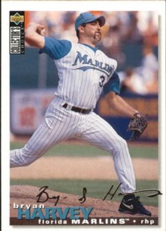 The Bryan Harvey 1995 Upper Deck Collector's Choice #310 Silver Signatures card is 1 of 3 Bryan Harvey's card variations in the 1995 Upper Deck Collector's Choice set being tracked by Sports Card Investor, including Base, and Gold Signatures.