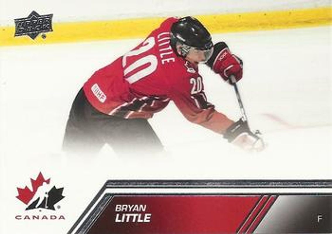 The Bryan Little 2013 Upper Deck Team Canada #22 Base card is 1 of 9 Bryan Little's card variations in the 2013 Upper Deck Team Canada set being tracked by Sports Card Investor, including Gold Signatures, Exclusive Red /100, High Gloss Gold /10, Black Signatures /5, and Printing Plates Black /1.