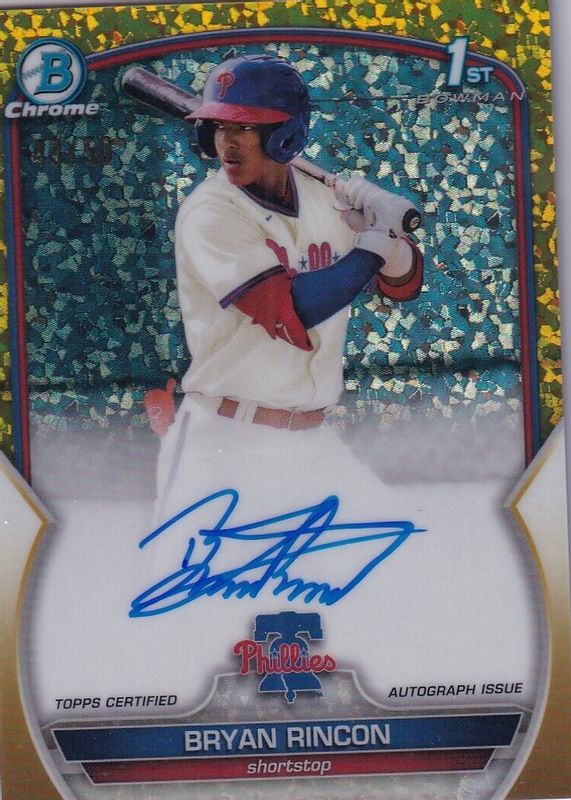 2023 Bowman Chrome Bryan Rincon /50 Auto Gold Mini Diamond 1st Phillies Prospect