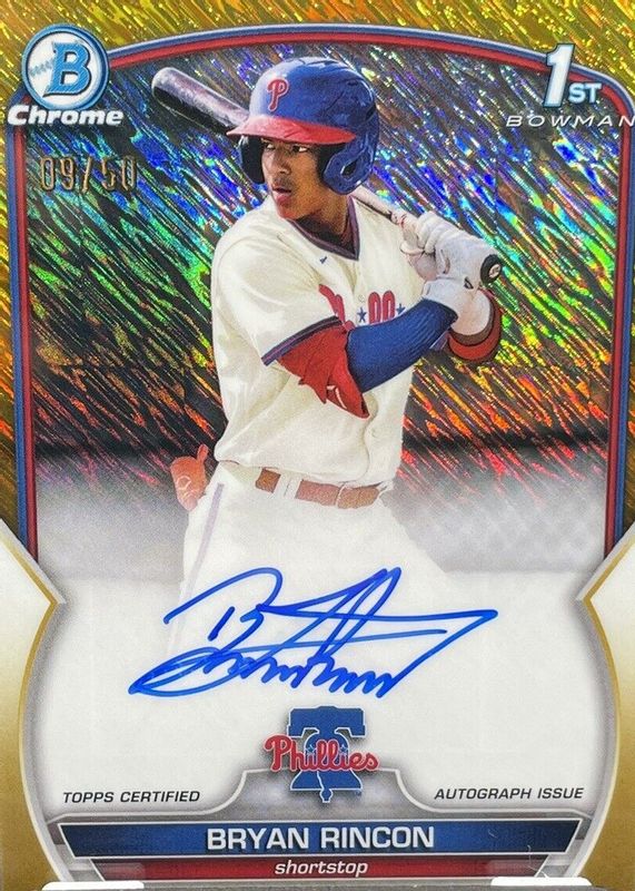 2023 Bowman Chrome 1st Gold Shimmer Autograph #35/50 Bryan Rincon PHILLIES