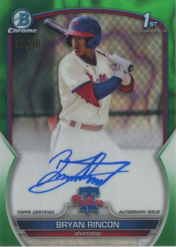 2023 Bowman Chrome BRYAN RINCON 1st Green Lava Refractor Auto #/99 Phillies