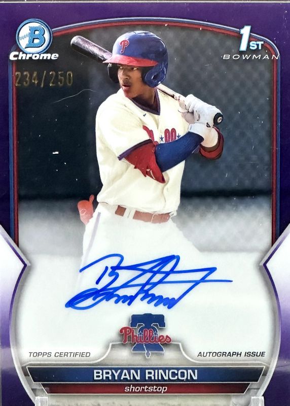 2023 BOWMAN CHROME 1ST PURPLE REFRACTOR BRYAN RINCON AUTO # 138/250 - Phillies