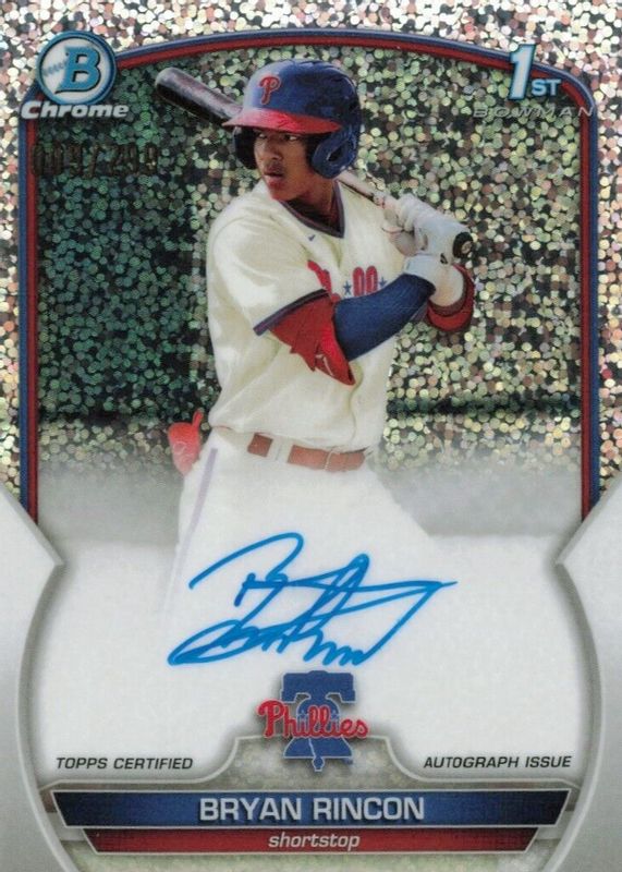 2023 Bowman Chrome Baseball Bryan Rincon 1st Speckle Chrome Auto /299