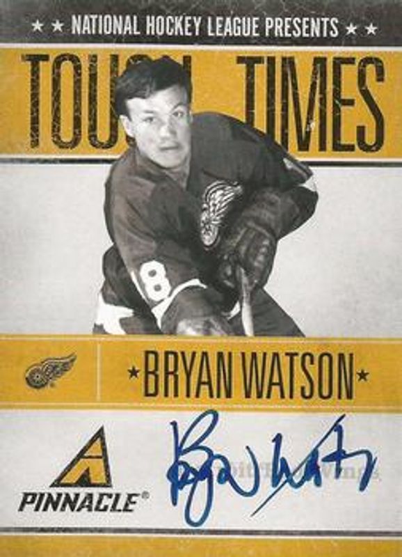 The Bryan Watson 2010 Pinnacle #BW Tough Times Autographs /250 card is 1 of 2 Bryan Watson's card variations in the 2010 Pinnacle set being tracked by Sports Card Investor, including Tough Times.