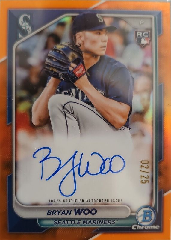 Auctions Ending Soon for Bryan Woo 2024 Bowman #CRA-BW Chrome Rookie Auto - Orange Refractor /25 RAW