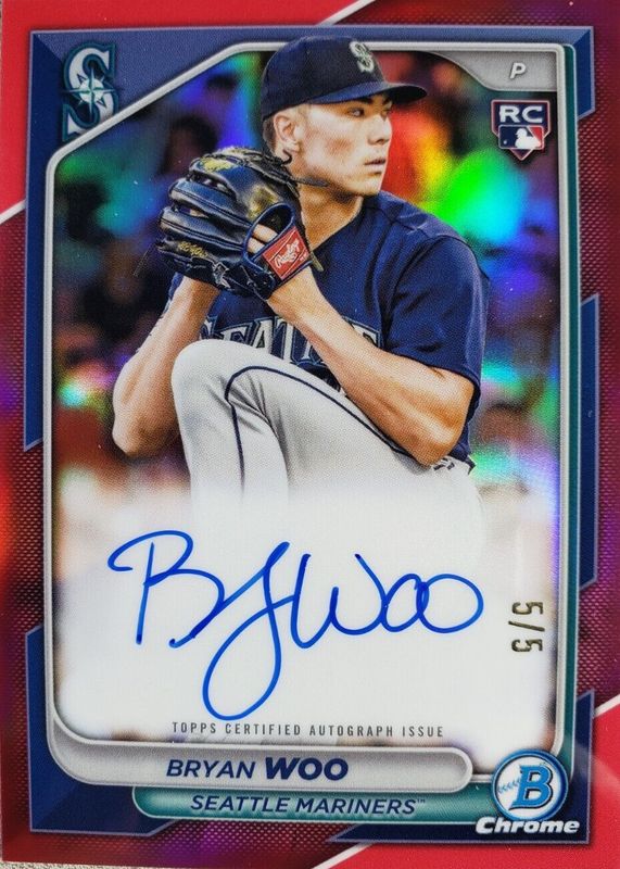 Auctions Ending Soon for Bryan Woo 2024 Bowman #CRA-BW Chrome Rookie Auto - Red Refractor /5 RAW
