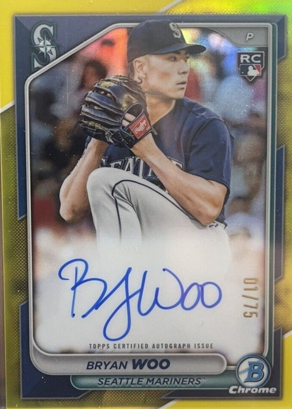 Auctions Ending Soon for Bryan Woo 2024 Bowman #CRA-BW Chrome Rookie Auto - Yellow Refractor /75 RAW