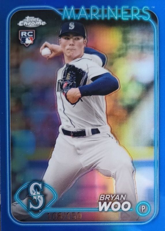 2024 Topps Chrome Blue Refractor Bryan Woo #172 Rookie RC #d /150 TRUE BLUE!