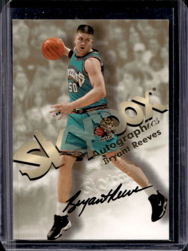 The Bryant Reeves 1998 Skybox Premium Autographics card is 1 of 4 Bryant Reeves' card variations in the 1998 Skybox Premium set being tracked by Sports Card Investor, including Base, Star Rubies /50, and Autographics Blue /50.