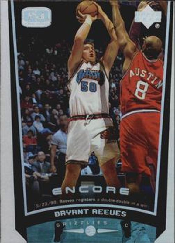 The Bryant Reeves 1998 Upper Deck Encore #85 Base card is 1 of 3 Bryant Reeves' card variations in the 1998 Upper Deck Encore set being tracked by Sports Card Investor, including F/X /125, and Intensity.