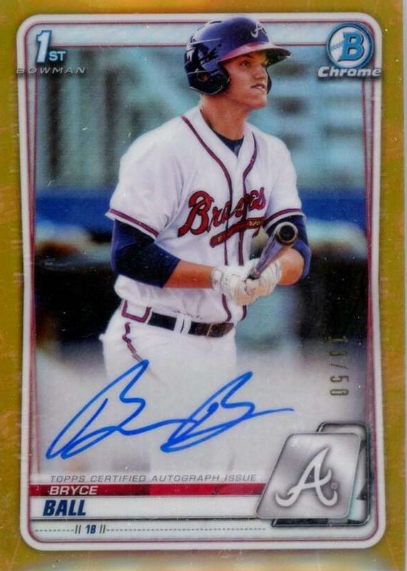 2020 Bowman Chrome Prospects Autographs Bryce Ball #CPA-BBA (AU, RC) 47/ 50 Gold