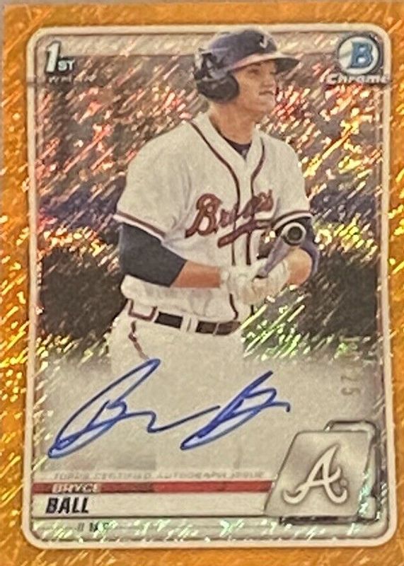 Auctions Ending Soon for Bryce Ball 2020 Bowman #CPA-BBA Chrome Prospect Auto - Orange Shimmer Refractor /25 (1st) RAW