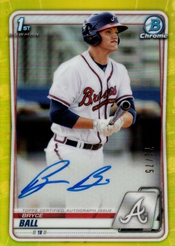 2020 Bowman Chrome 1st Bryce Ball Yellow Refractor Auto /75 Braves HOT ROOKIE RC