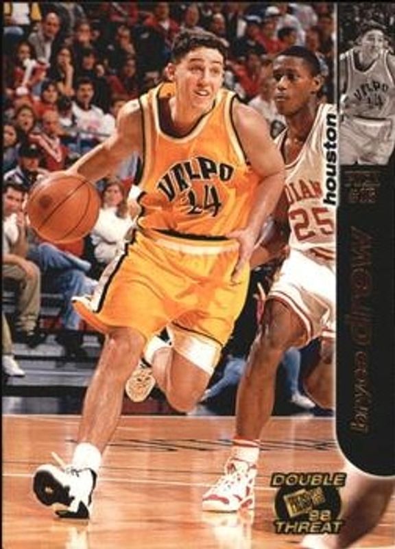 Other popular players in the 1998 Press Pass Double Threat set include Tim Thomas (NBA), Al Harrington, Andrae Patterson, Antoine Walker, and Bonzi Wells.