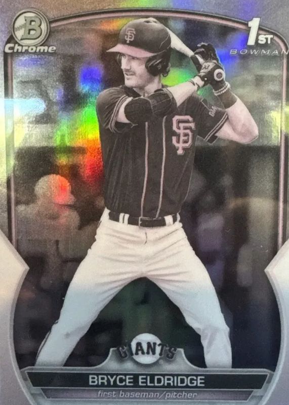 This card is 1 of 44 Bryce Eldridge's card variations in the 2023 Bowman Draft set being tracked by Sports Card Investor, including Chrome (1st), Chrome - Japan Refractor (1st), Chrome - Lunar Glow Refractor (1st), Chrome - Refractor (1st), and Chrome - Sky Blue Refractor (1st).