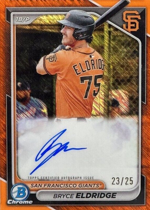 Auctions Ending Soon for Bryce Eldridge 2024 Bowman #CPA-BE Chrome Prospect Auto - Orange Shimmer Refractor /25 RAW