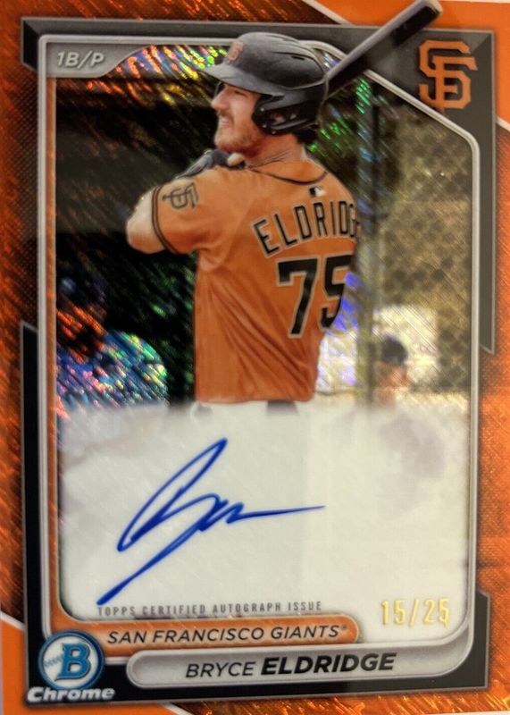 Bryce Eldridge 2024 Bowman #CPA-BE Chrome Prospect Auto - Orange Wave Refractor /25 RAW Price Guide