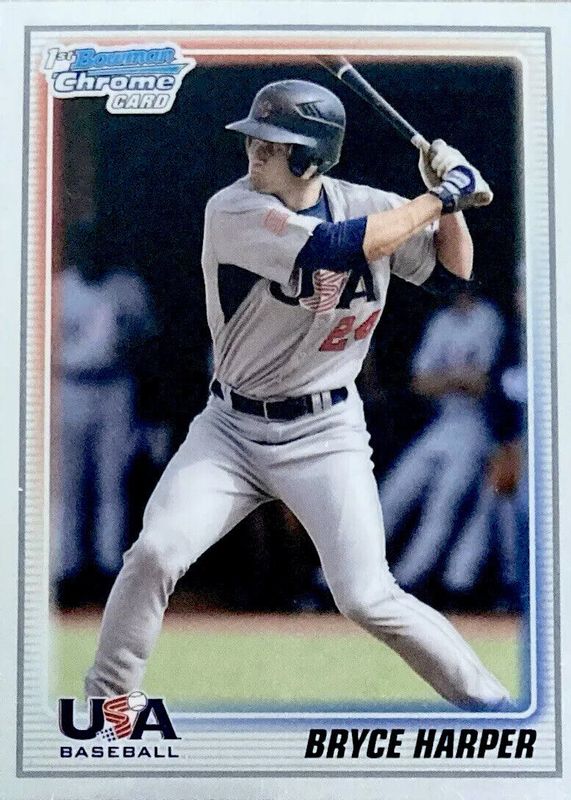 The Bryce Harper 2010 Bowman Chrome #USA18-BC8 18U USA Baseball (1st) card in Raw condition has moved up $15.00 (+150%) in the last 30 days and was last sold for $25.00 .