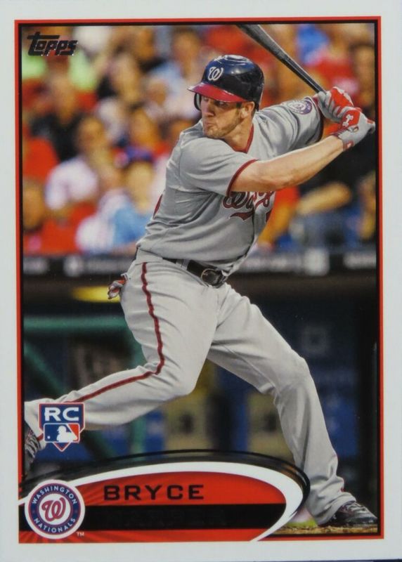 The Bryce Harper 2012 Topps #661 Base (Front Leg Up) Rookie card in Raw condition has moved up $3.99 (+26.6%) in the last 30 days and was last sold for $18.99 .