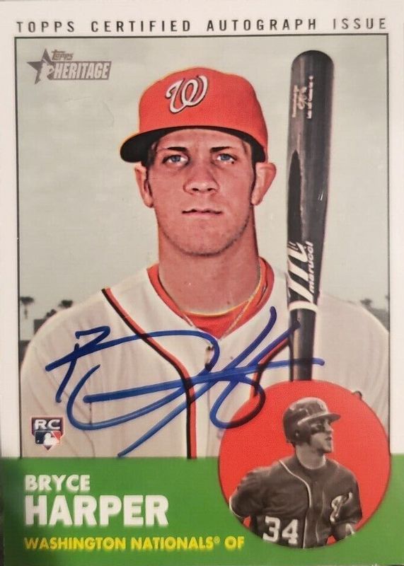 Auctions Ending Soon for Bryce Harper 2012 Topps Heritage High Number #ROA-BH Real One Autographs Rookie RAW