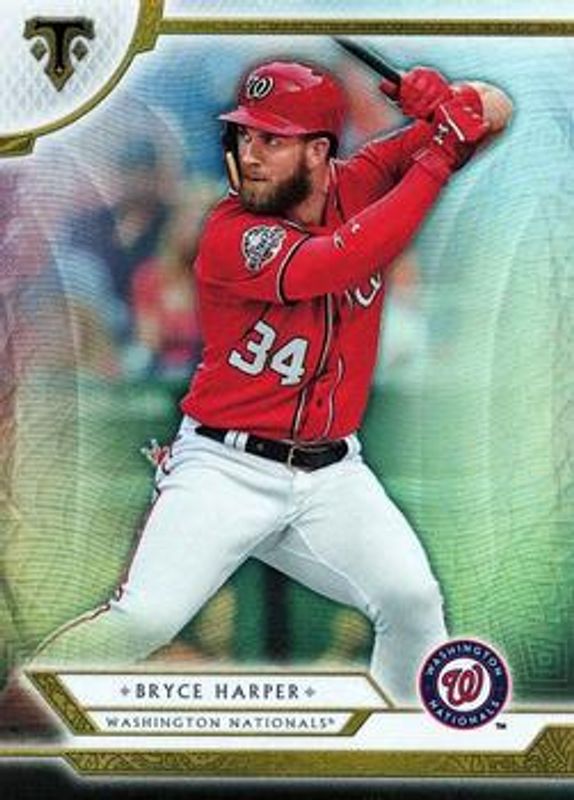 The Bryce Harper 2018 Topps Triple Threads #1 Base card is 1 of 63 Bryce Harper's card variations in the 2018 Topps Triple Threads set being tracked by Sports Card Investor, including Amethyst /299, Emerald /259, Amber /199, Gold /99, and Onyx /50.