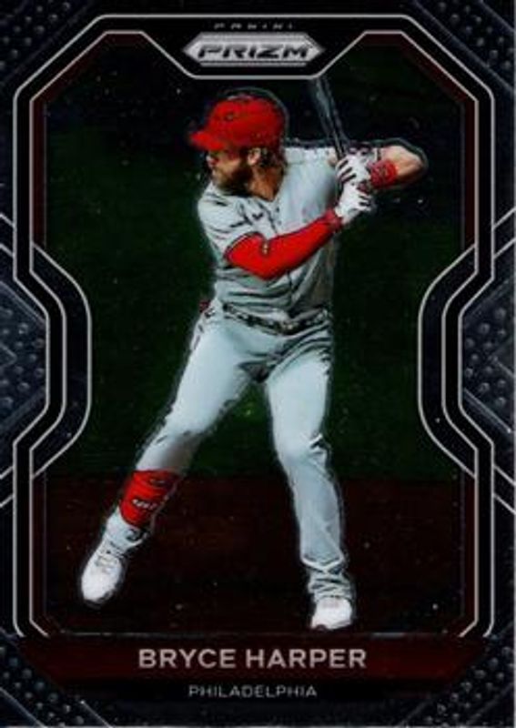 The Bryce Harper 2021 Prizm #187 Base card is 1 of 88 Bryce Harper's card variations in the 2021 Prizm set being tracked by Sports Card Investor, including Blue, Blue Velocity, Carolina Blue, Cosmic Haze, and Giraffe.