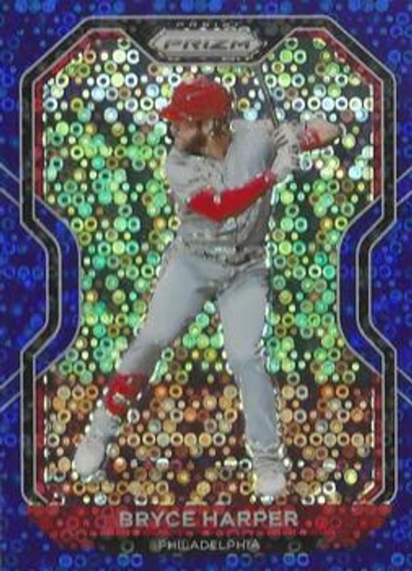 The Bryce Harper 2021 Prizm #187 Blue Donut Circles /199 card is 1 of 88 Bryce Harper's card variations in the 2021 Prizm set being tracked by Sports Card Investor, including Base, Blue, Blue Velocity, Carolina Blue, and Cosmic Haze.