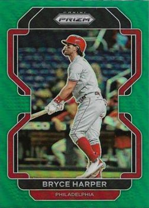The Bryce Harper 2022 Prizm #6 Green card is 1 of 119 Bryce Harper's card variations in the 2022 Prizm set being tracked by Sports Card Investor, including Base, Blue, Blue Velocity, Carolina Blue, and Cosmic Haze.