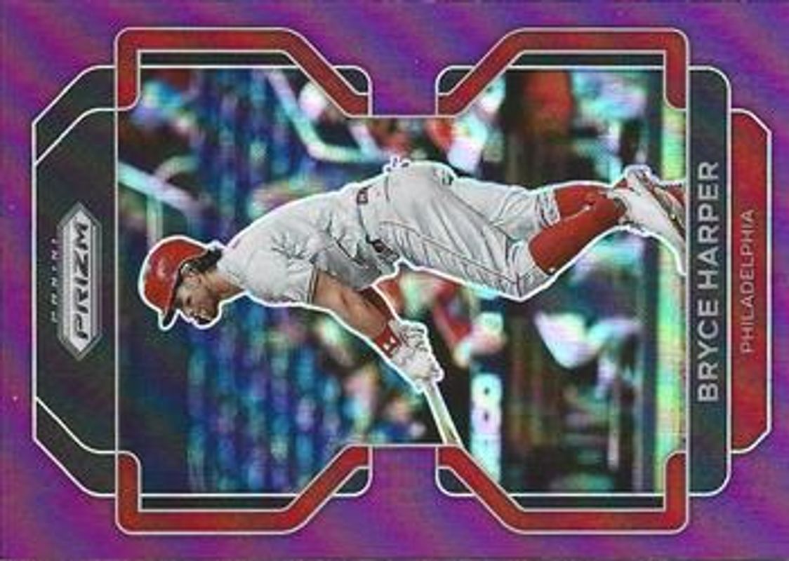 The Bryce Harper 2022 Prizm #6 Purple card is 1 of 119 Bryce Harper's card variations in the 2022 Prizm set being tracked by Sports Card Investor, including Base, Blue, Blue Velocity, Carolina Blue, and Cosmic Haze.