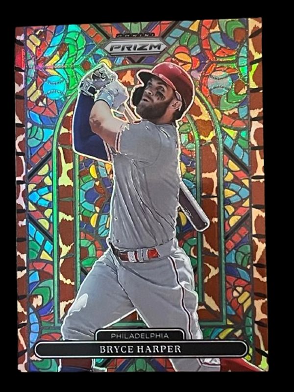 The Bryce Harper 2022 Prizm #SG-4 Stained Glass - Giraffe card is 1 of 119 Bryce Harper's card variations in the 2022 Prizm set being tracked by Sports Card Investor, including Base, Blue, Blue Velocity, Carolina Blue, and Cosmic Haze.