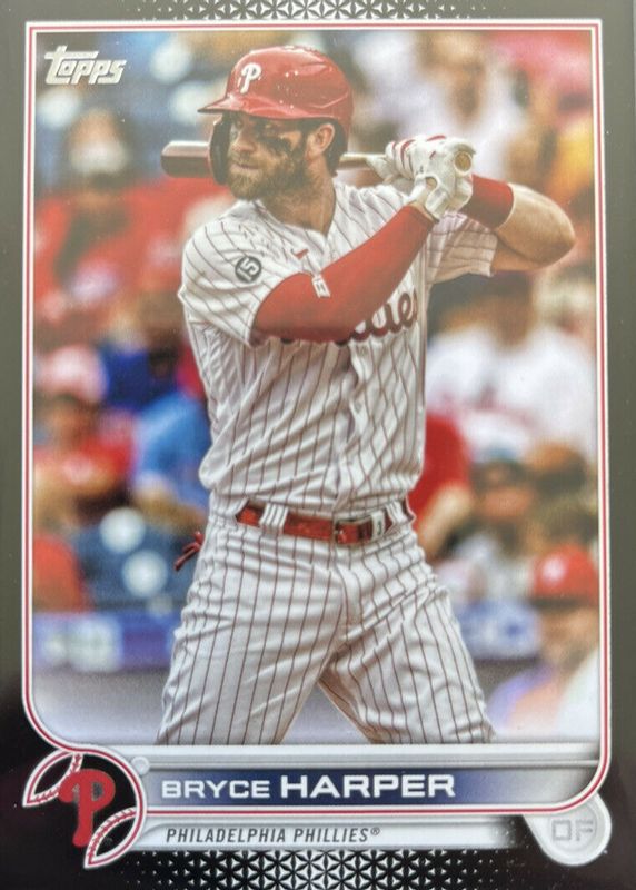 This card is 1 of 21 Bryce Harper's card variations in the 2022 Topps set being tracked by Sports Card Investor, including SP Variation, Gold /2022, Green Foil /499, Advanced Stats /300, and Orange Foil /299.