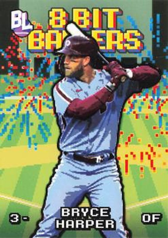 The Bryce Harper 2023 Topps Big League #8B-14 8 Bit Ballers card is 1 of 18 Bryce Harper's card variations in the 2023 Topps Big League set being tracked by Sports Card Investor, including #3 Base, #289 Base, #3 Electric Orange, #289 Red Foil, and #3 Red Foil.