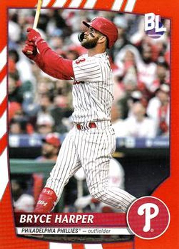The Bryce Harper 2023 Topps Big League #3 Electric Orange card is 1 of 18 Bryce Harper's card variations in the 2023 Topps Big League set being tracked by Sports Card Investor, including #3 Base, #289 Base, #289 Red Foil, #3 Red Foil, and #289 Black Foil /25.