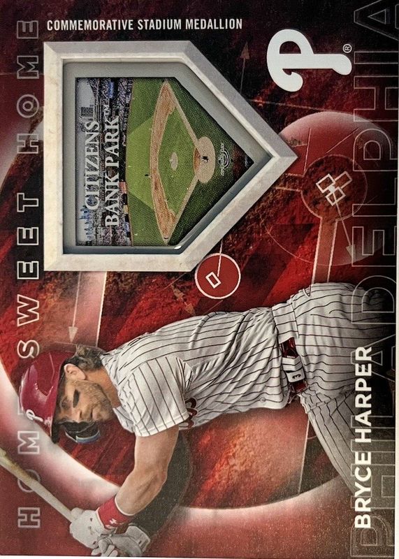 Auctions Ending Soon for Bryce Harper 2024 Topps #HSH-BH Home Sweet Home Stadium Medallion - Red /10 RAW