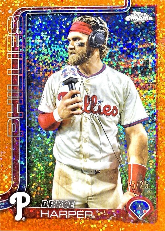 Best Prices Available For Sale of Bryce Harper 2025 Topps Chrome #150 Image Variation - Orange Speckle Refractor /25