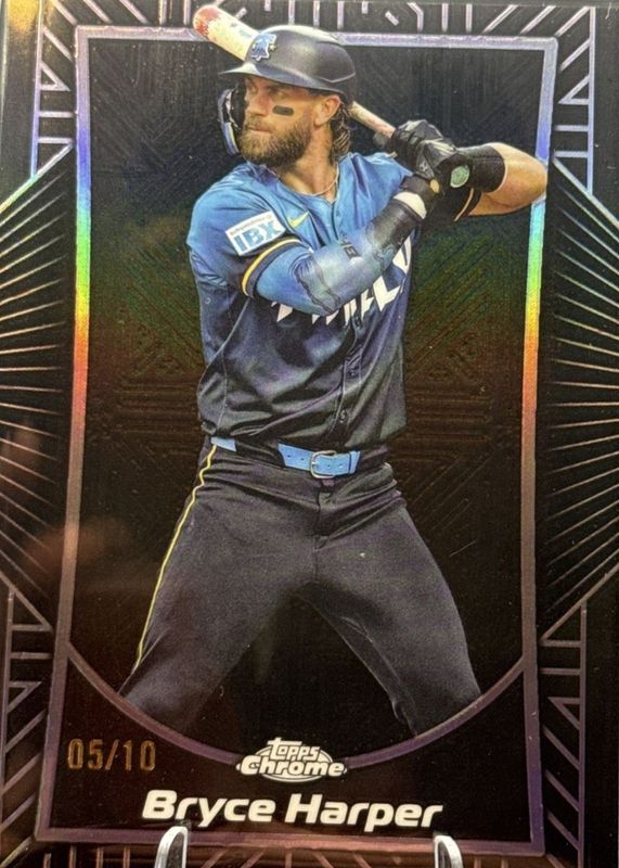 The Bryce Harper 2025 Topps Chrome #SE-4 Shadow Etch - Black Refractor /10 card in Raw condition has not changed in price in the last 30 days and was last sold for $150.00 .