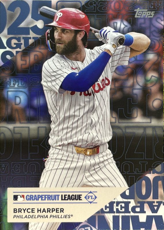 The Bryce Harper 2025 Topps #TG-3 Training Grounds card is 1 of 298 Bryce Harper's card variations in the 2025 Topps set being tracked by Sports Card Investor, including Base, Aqua Holo Foil, Diamante Foil, Holo Foil, and Pink Diamante Foil.